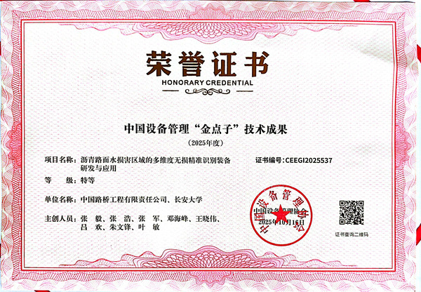 2025年10月15日至17日,由中国设备管理协会主办,《中国设备工程》杂志社、《电力设备市场》杂志社、中国设备管理协会品牌建设与技术应用委员会、景津装备股份有限公司等单位联合承办的2025(第六届)中国设备管理新趋势交流会在山东德州成功举办。无码av影片 教师参与的“沥青路面水损害区域的多维度无损精准识别装备研发与应用”项目荣获中国设备管理“金点子”技术成果“特等奖”。