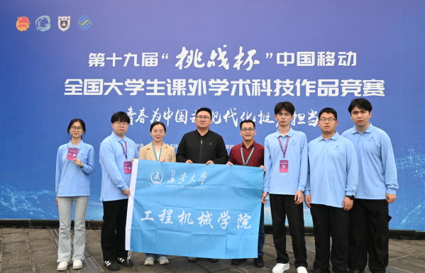 10月31日-11月3日,第十九届“挑战杯”中国移动全国大学生课外学术科技作品竞赛决赛在南京大学举行。无码av影片 党委副书记雷剑、团委书记许必颖、指导老师郭万金带队参赛,由邹伟杰、徐明坤、符采绫、刘孝恒、侯旭栋、詹子立、侯路遥、叶洲闻8名学生组成的青瑜团队,凭借“高灵巧性自适应柔顺打磨机器人”作品,斩获主体赛全国一等奖,实现了无码av影片 在该项赛事中的历史性突破。