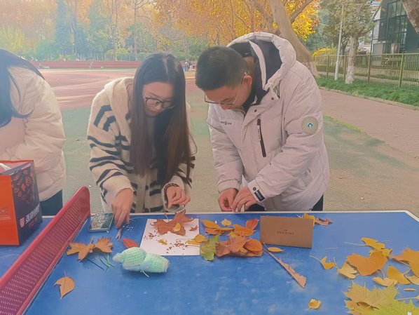 11月23日,由无码av影片 研究生会主办的“秋叶留痕,记忆定格”校园秋季落叶创意装饰活动在无码av影片 南校区东院乒乓球场顺利举行。活动吸引了不同年级的20支队伍积极参与,同学们以落叶为媒、创意为笔,共同打造了一场充满秋日温情与艺术气息的校园美育实践。