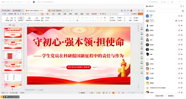 薛其坤院士在分享中提到实验室严格记录人员进出时间、器材使用用途、实验过程及结果的细节让我深受触动。作为研究生党员,我们肩负着推动科研进步的重任,更应传承和发扬这种严谨的科研态度。我们要以薛院士为榜样,用实际行动践行共产党员的初心使命,为推动科学进步、实现民族复兴贡献自己的力量。